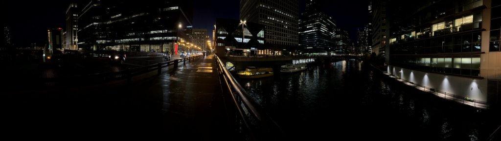 A water taxi, a tour boat and the train station